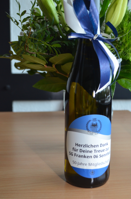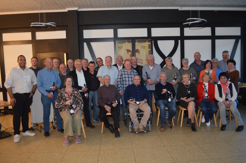 Im Mittelpunkt des Abends standen die Auszeichnungen für langjährige Vereinszugehörigkeit. Mitglieder mit 25 Jahren Treue wurden mit der silbernen Vereinsnadel geehrt, während für 40 Jahre die goldene Vereinsnadel verliehen wurde. Eine besondere Anerkennung erhielten die Jubilare mit 50 Jahren Mitgliedschaft: Sie bekamen einen Wein überreicht, dessen Flasche mit einem personalisierten Emblem zum 120-jährigen Bestehen des Vereins versehen war.